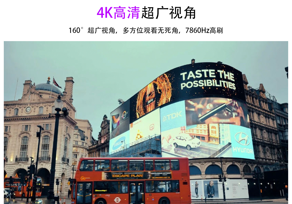 5.高刷新率與廣視角:具備高刷新率,能夠確保畫面的流暢性和穩(wěn)定性。同時(shí),廣視角設(shè)計(jì)使得觀眾無(wú)論站在哪個(gè)角度都能獲得清晰的視覺體驗(yàn)。